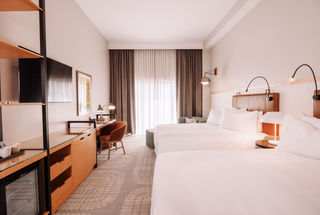 Hotel Verdant features an Italian restaurant, Marguerite, offering healthy breakfast, lunch, and dinner options with a hearth-fired spin. The rooftop bar and restaurant, Eave, is sure to become a destination for travelers and locals with its shareable plates and botanical cocktails and mocktails made with ingredients sourced from the rooftop garden. Additional sustainable touch points include the hotel's green roof, solar panels, and wind turbines, from which on-site energy is produced. Transforming Racine into a go-to events destination, the elegant, 3,500-square-foot Belle Ballroom will accommodate wedding guests and meeting attendees in style.