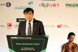 Hideo Sawada, President of the Henna-na Hotel, spoke at the Hotel Technology Summit in Dubai yesterday, addressing an audience of 150 hotel professionals and executives on the topic "Robot revolution: Are robots the future of hospitality?"