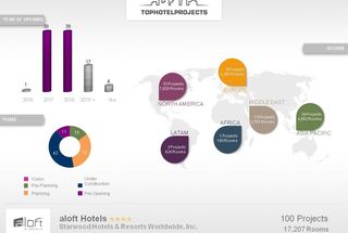 Aloft has the following hotel projects to be completed. This data is provided by TOPHOTELPROJECTS; all project details including suppliers and contacts can be found on their database: