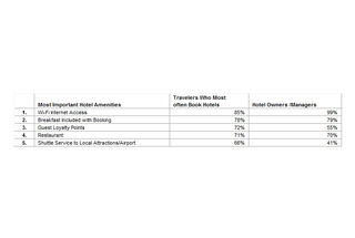 The following chart shows the Top 5 most important amenities according to U.S. travelers who most often book hotels. Additionally, respondents representing hotels gauged how important these same amenities are to travelers. Their answers are displayed below: