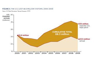 According to Dow, the U.S. welcomed a projected 2.4 million fewer overseas visitors in 2009 than in 2000. This contrasts with the growth in international travel over the decade, which resulted in 46.3 million more international travelers taking long-haul trips in 2009 than in 2000.