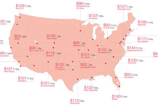 - Among the greatest hotel room price falls in 2009 compared to 2008 across major U.S. Cities were: 18 percent in Chicago ($167-137), Las Vegas ($103-$85) and San Diego ($154-$127); 14 percent in Boston ($183-158) and Miami ($162-$140) and 12 percent in Honolulu ($181-$160), LA ($134-119), Orlando ($106-$93) and Phoenix ($115-$101).