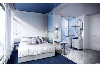 Mondrian's mesmerizing ambiance continues within the 270-room hotel, which includes four sprawling suites, each featuring a terrace, and a grand Penthouse on Mondrian's 25th floor. Saturated blue corridors with custom carpet adorned with a rose vine design provide entryway to the elegant jewel-box rooms featuring large dramatic mirrors, a clever nod to the ubiquitous French tale. A number of rooms also feature a pristine marble foyer and bar area, sparkling chrome desks and classic translucent doors offering entry to the bathroom with custom-designed fixtures. Chrome night tables and sconces offset an angelic white bed, 10-foot ceilings and floor-to-ceiling windows capture the essence of a true New York City loft while lending stunning views from within the SoHo neighborhood's tallest building.