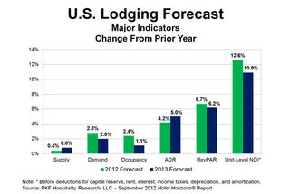 "Lodging industry participants continue to be pleasantly surprised with the sustained levels of hotel room demand growth," said R. Mark Woodworth, president of PKF-HR. "Bucking all apparent economic trends, lodging has been a leading industry during this sluggish economic recovery. This is different from past recovery periods when hotels typically lagged other industries."
