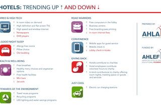 "Providing the highest level of quality service is paramount in our business and keeping ahead of guests' needs is a critical component," said Katherine Lugar, president and CEO of AH&LA. "From high-tech gadgets and amenities to charitable giving to being good stewards of our environment, the hotel industry continues to grow, innovate and accommodate changing consumer behavior. It is this flexibility and remarkable adaptability that allows the hotel to grow and thrive even as other business sectors struggle."