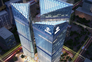 Hilton Chengdu's eye-catching architecture is courtesy of world-renowned design firm, Atkins, which was also behind high profile projects such as the development of downtown Dubai and the Eiffel Tower light displays. The hotel building is capped with crystal-like structures and at night-fall, visitors are treated to a light show put together by the same company that was responsible for the famous light displays at the Eiffel Tower in Paris, France. The interior of the hotel draws inspiration from the galaxy and features different lighting installations set against a lobby that boasts a three-storey high ceiling.