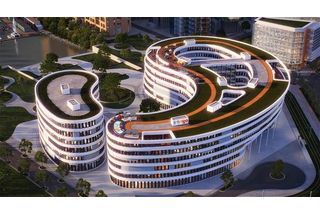 The six-storey, high-rise building (to accommodate 2,000 people) has been designed by SOP Architekten in Dusseldorf and will offer 26,000 m² (280,000 ft2) of open, accessible space – with room to expand by an additional 1,500 people to a 16-storey building next door.