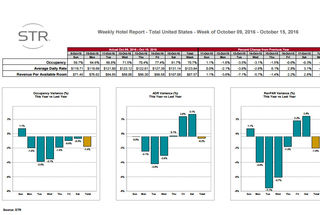 STR: US hotel results for week ending 15 October
