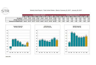 HENDERSONVILLE, Tennessee – The U.S. hotel industry reported positive results in the three key performance metrics during the week of 22-28 January 2017, according to data from STR.