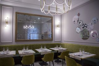 Located on the first floor of the hotel, the 40-seat Bacharach & Bistrot is an homage to the distinguished American composer Burt Bacharach. Elegant and loungey, sage green banquets and bar stools provide splashes of color, contrasting the white and grey-veined marble floors, salvia green chairs, and a bar framed by walnut wood paneling. Guests can expect a painstakingly sourced à la carte menu of international classics alongside regional specialties, as well as one of Rome"s pre-eminent breakfasts, served until 2:30pm.