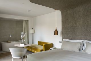 Rooms and suites are decorated in neutral tones, with yellow hints, natural finishes and signature pieces such as decorative glass bottles made by Josep Mª Jujol, Antonio Gaudí's close collaborator who created the bottle "Casa de Familia" in 1912, and which over a century later becomes the icon at the core of the interior design of ME Barcelona.
