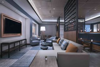 Acclaimed international hospitality design firm, Hirsch Bedner Associates (HBA) San Francisco, redesigned the Houston Marriott Medical Center/Museum District with an innovative reconfiguration, dramatic upgrades in lighting and furnishings, and the addition of organic forms and colors found in nature. The design concept of "mindful comfort" is conveyed with unobstructed pathways and wider views, earthy colors, and an artful array of textures.