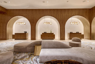 Offering a haven to forge new connections and reconnections, at the helm of the hotel is an architecturally impressive, reinvigorated lobby designed by The Rockwell Group. The lobby unfolds under a series of dramatic archways and glowing chandeliers where guests can find intimate places to work, lounge and socialize and is centered around a monolithic carved marble bar with an intricate light installation composed of crystal glass and metal rods. Appearing like a grand jewel, the light installation contrasts and complements the classic architecture comprised of warm wood paneling, stone and soft neutral tones throughout, adding an organic sense of sophistication. The space is designed to reflect the time of day, buzzing in the morning and offering a relaxing and warm environment to unwind with flavorful dishes featuring unique culinary fusions complemented with unexpected cocktail pairings at night.