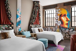 The 70-room contemporary hotel and living art installation breathes new life into a once abandoned building while preserving beautiful evidence of its past lives — from a 1920s breakfast cereal factory to a graffiti artists' vacant paradise. With rebel luxe interiors by Suomi Design Works, the hotel's richly layered design effortlessly melds with towering raw concrete pillars, exposed brick walls, and original street art, including work from decades past as well as modern additions. Paired with distinctive guest touch points created by Might & Main, the result is a place that feels like nowhere else — you might not know exactly when (or where) you are, but a flute of rare vintage bubbly and a bag of salty potato chips feels right. Simultaneously spectacular and ultimately approachable, The Radical will be a decadent and welcoming destination for all within the gritty RAD neighborhood.