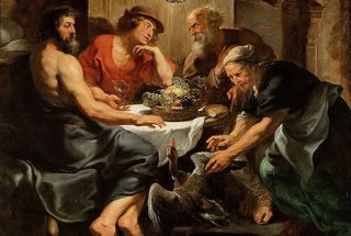 The two ancient Greek Gods, the story goes, visited many villages in search of refuge for the night. A poor elderly couple, Baucis and Philemon, welcomed them as guests in their home and generously served them food and wine.