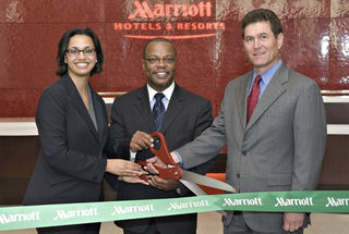 Marriott International, Inc. celebrated today the opening of the 403-room Atlanta Airport Marriott Gateway, a newly constructed hotel adjacent to the Georgia International Convention Center and connected to Atlanta’s Hartsfield -Jackson International Airport. Contemporary in feel and filled with natural light and vibrant colors, the hotel’s facilities for business and relaxation represent the latest design and innovation of Marriott Hotels & Resorts. The Atlanta Airport Marriott Gateway is on track to earn LEED® (Leadership in Energy and Environmental Design) certification silver from the U.S. Green Building Council. The hotel will be operated under a management agreement with Grove Street Partners.