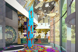 Designed by Rem Koolhaas / OMA, the building was inspired by one of the most iconic features of RAI Amsterdam, the advertising column known as "Het Signaal." Consisting of three superposed triangles, the building points in many directions, symbolizing the diversity that characterizes the past, present and future of the city of Amsterdam. The room design is inspired by the six cardinal directions to which the building's corners point: South, East, North, South West, South East and North West. Themes from the "Golden Age" of Amsterdam as a commercial center of Europe surface in the rooms together with wellknown international symbols, for example mandalas from India, Mexican "Día de Muertos" skulls or cherry blossoms from Japan in the sample room: all symbols are arranged in a modern international setting. The interior design was developed by NEXT Architects in collaboration with GLG/MVSA Architects.
