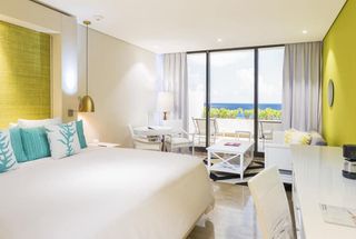 The 473 square-foot suite showcases a fresh new take on the existing room categories and allows guests to immerse themselves in the energy of the Caribbean. The private terrace features ocean views and is the most appealing aspect of the suite. Expansive views of the crystal blue sea are available throughout the suite. The Ocean View Luxury Junior Suite features two options, one king-size bed or two double beds.