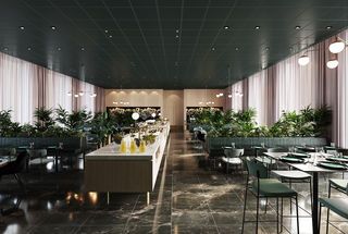 You enter the hotel from a busy urban environment and immediately experience the soft, soothing atmosphere through subdued use of colors, such as dark green ceilings, brass materials and warm natural tones.