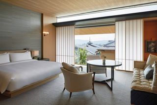 The low-rise hotel features 70 guest rooms, including nine suites, offering calm and respite from the bustle of Higashiyama's neighboring streets. The elegantly designed rooms and suites highlight local craftsmanship and materials such as fragrant Tamo wood, original artwork and Zen garden views.