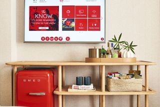 Ranging from 323 to 1,395-square-feet, Chambers are bright and airy with warm textiles and Design District-sourced accessories and lighting. The Dressing Room includes a full vanity tucked between two white oak closet systems, sit-down makeup desk with mounted illuminated mirror, and an extra-large shower with a bench. A sliding wooden door (complete with peephole) separates it from The Lounge, which features Virgin's patented ergonomically designed bed with a channel-tufted headboard, a red SMEG® mini-fridge stocked with street-priced snacks, High Definition TV and yoga mat. Other design touches include striped flannel wallcoverings, crisp white bedding trimmed in red piping, a plush curved sofa and sculptural brass fixtures. All Chambers feature custom lighting on sensors that automatically illuminate when guests move and ample outlets for smartphones and other electronic devices.