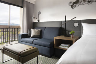The hotel's 766 Tower and Garden Terrace guest rooms, including seven suites, are each thoughtfully appointed with details such as circuit board-styled artwork and bathrooms with sliding barn doors and rain-type showers.