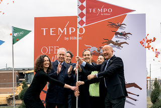 In line with the brand's commitment to localized touches in each property, this first Tempo by Hilton groundbreaking saw brand representatives and local dignitaries gather for an exciting event that included nods to the historic Kentucky Derby with details such as a burst of rose petals that evoked the famous race also known as the "Run for the Roses". The ceremonial groundbreaking was symbolized by the staking of a Tempo by Hilton flag into the property site ground.