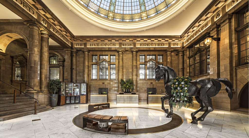 Kimpton Clocktower Hotel is a magnificent terracotta Grade II listed building with a history dating back to 1890, when it first opened as The Refuge Assurance Company headquarters. The grand clock tower at the centre of its striking Victorian architecture is an unmistakable landmark on Manchester's skyline. All 270 loft-style bedrooms, including 11 suites, were designed to make the most of the stunning, double and triple-height ceilings. Other original period features including glazed brick, tile, faience, stained glass and carved wooden staircases, are combined with contemporary fittings and interiors. In the hotel's lobby, a three-metre-tall bronze horse by artist Sophie Dickens represents a horse-and-carriage 'turning circle' that once stood on the same spot.