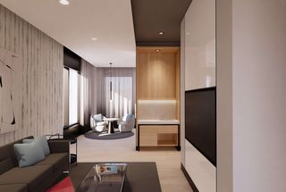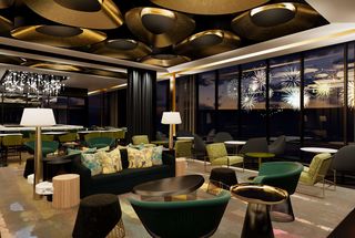 Radisson Blu Anaheim showcases international design inspiration and elements married with the casual elegance of California outdoor living. The hotel embraces its location with subtle nods to surrounding attractions embodying a sophisticated style fit for business travelers yet simultaneously conducive to family vacations. One example can be found in the lobby's bespoke hand-tufted rug, which is an abstraction of the property's position at the juncture of I-5 and Anaheim Boulevard.