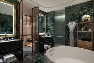 The grand garden mansion offers discerning guests a sanctuary of serenity and natural light immediately as they are welcomed through the Trellis, a modern and palatial space for dining and socializing, into a reception area flush with rich emerald blues. Rich botanical life and details abound to complement the earthy charm of the city itself, while circular elements are a motif within the hotel's innovative design, referencing harmony, togetherness and the intertwining of local and international culture.
