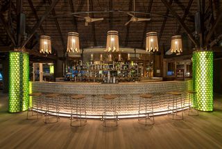 A new collection of contemporary furniture, inspired by travel pieces from around the world, decorates the different spaces of the hotel and brings freshness, modernity and novelty. Lamps made of rope, a large shell chandelier, back-lit columns made of bottles, vibrant sofas, whitewashed bricks and neon lights are just a few of the additions. There's even an old Citroen food truck set in the sand by the new Grill Lounge, adding extra character and providing a real focal point while guests chill under bamboo pergolas playing games, reading or simply relaxing with a drink.
