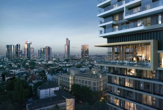 The building was designed by Cyrus Moser Architects and is a striking glass skyscraper with balconies that wind their way upwards to give it its unique silhouette in the Frankfurt skyline. It has been built in the space formerly occupied by the famous "Afe Tower", which belonged to the University of Frankfurt and was demolished in 2014.