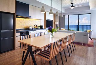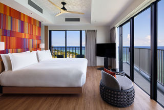 Respecting the traditions and culture of Okinawa, The Beach Resort Sesoko is infused with a modern style. All 140 rooms (studio, and 1-3-bedroom suites) have ocean views, and guests can enjoy a view of Minna Island and Ie Island from their private balcony. Each room is equipped with a full kitchen and a washer/dryer (excluding studios), so guests can enjoy cooking Okinawan specialties. The private pool and lounge area is a relaxing amenity available exclusively for guests. Other amenities include, a lounge, bar, meeting rooms, a fitness facility, outdoor/indoor pools, and access to the spa at the adjacent Hilton Okinawa Sesoko Resort.