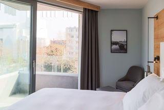 The hotel comprises 99 rooms and suites across six categories, ranging from cozy rooms to suites with balconies and kitchenettes. The wood and white décor of the rooms reflects Radisson's signature minimalist Scandinavian style, blending comfort with functionality, with sporadic touches of color and local accents.