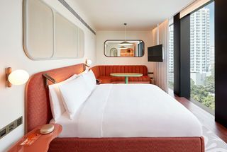 The Standard, Bangkok Mahanakhon's beautifully understated rooms are balanced by bold, glamorous touches such as the softly-lit bar area and retro-style furniture. At 144 sqm, The Bigger Penthouse with its sumptuous upholstery, a full kitchen setup with Gaggenau appliances, ensuite bathroom with a giant soaking tub, and indoor plants feels like a stately home where good times reside.