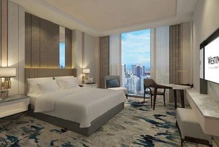 The 32-storey hotel features 303 rooms including 57 suites. With views of the Metro Manila skyline, rooms and suites feature the brand's iconic Heavenly Bed, Nespresso coffee machines, bluetooth speakers, complimentary Wi-Fi, and 55-inch flat Samsung TVs.