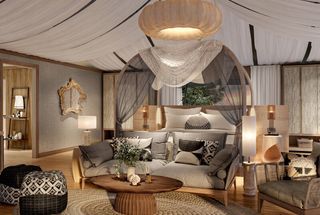 The lodge's elegant interiors, designed by Kristina Zanic Consultants, seamlessly blend the savannah inwards, drawing inspiration from the elements with soft, warm tones, natural materials and textures, and native colours thread through its design. Each of the lodge's 20 private tents provide a peaceful sanctuary to recharge and reset, and feature terraces overlooking the River Talek, a water source and habitat for many wildlife. The tented honeymoon suite offers a private plunge pool, while two interconnecting king and twin suites are ideal for families with children over the age of six (the minimum age of guests at the lodge).