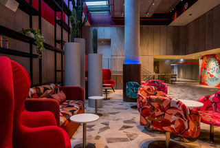 Designed in collaboration between Tzannes and Team 2 Architects with interiors by SJB, the new hotel will sit alongside the former Cambridge Hotel, which will also rebrand to ADGE Hotel + Residences and is currently undergoing a significant overhaul. Together, the hotels form part of a $65m transformation of the site, that mirrors the unique spirit and energy of Surry Hills through bold colours, eclectic furnishings and plenty of personality.