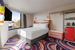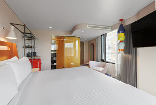 Featuring a specially commissioned large-scale mural at the hotel entrance from eminent Australian artist, Adrian Hing, inviting the curious to uncover what's inside, each floor of the hotel features a unique colour and art style. Reflecting the distinctive lifestyle of Surry Hills, an abstract sculpture of powder coated stainless steel and neon lights by Anna Varendorff creates eye-shifting shadows on the building's exterior that is both gleaming and ephemeral.
