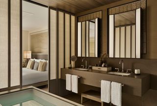 Across eight floors, Janu Tokyoʼs rooms and suites continue the experience, spanning from 55 sqm up to 519 sqm in size and redefining contemporary elegance. Meticulously designed, a strong focus on Japanese minimalism and symmetry brings space and harmony amidst the energy of the city, while elegant European accents add a touch of opulence and grandeur. Most offer private balconies immersing guests in the city skyline, while Corner and Tower View Suites benefit from dual-aspect views through magnificent windows. Creating seamless ease for groups and families, an abundance of connecting rooms are available, while all enjoy large bathrooms with double vanities, rain showers and bespoke soaking tubs - separated from their bedrooms by sliding partition walls ‒ alongside spacious walk-in wardrobes and inviting living areas.