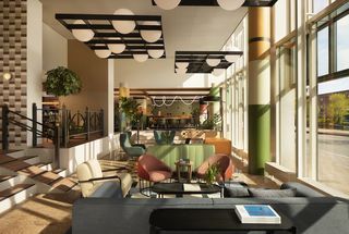 The hotel's design is inspired by Stedelijk Museum's expansive collection, blending the avant-garde and the traditional to create modern, inviting interiors. Brick, a prominent material in Amsterdam, adds a touch of the city's architectural identity to the gleaming glass façade. Inside, clean lines and practical furniture pay homage to functionalism and rationalism, while mirrors and polished surfaces echo the city's tranquil canals. The geometric patterns and block colours of the carpets, tiles and soft furnishings are inspired by the works of renowned 20th century artists, including Piet Mondrian, Anni Albers, Gunta Stolzl and Sophie Taeuber, completing the artistic fusion within the design.