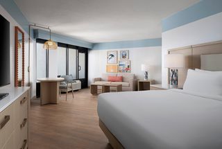 The multi-brand concept provides larger and enhanced communal areas and amenities compared to the standard for a standalone property, benefiting both business and leisure travelers. The oceanfront resort has a vast range of comforts, including two on-site restaurants, Ocean Blue Restaurant and Southern Tide Bar & Grille. Recreational options include six pools and three waterslides, direct access to the beach and Springmaid Pier, mini-golf course, sport courts, and 24-hour fitness centers. Additionally, the hotel offers 38,000 square feet of flexible meeting space.