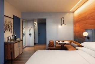 Guestrooms and suites showcase the vibrant colors of the Costa Rican landscape through shades of orange, blue, copper and green as drawn from the sunrise over the mountains, the textures of the summits, and the contrasting views of the forest and city lights below. Guests will find curated artwork in guestrooms such as ceramic wall decor and small ceramic bath amenities as well as watercolor canvases. All guestrooms are outfitted for comfort with a creative and compact design, with inviting seating areas and a host of thoughtful amenities, from complimentary Wi-Fi and minifridges to plush bathrobes and Drybar hair dryers. Many guestrooms offer vivid views of the city and mountains.