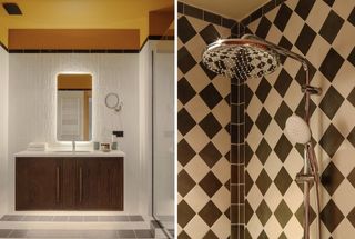 The rooms blend refined minimalism with distinctly Georgian character, balancing clean architectural lines with thoughtfully chosen artisanal details. Textural felt wall pieces by Georgian artist Mariana Chkonia introduce a tactile, organic warmth, while honey-toned wooden floors are softened with handwoven jute rugs underfoot. A curated interplay of local and international craftsmanship defines the spaces: custom-made furnishings by Georgian woodworking atelier WOOD Crafters are paired with design icons such as Gervasoni's Gray Bergère armchair - a timeless piece emblematic of the Italian brand's 140-year heritage of understated elegance. Spacious bathrooms are fitted with either an orientally inspired checkered-black-and-white tile pattern, or a soothing mustard overhead with white metro-tiles and wooden features. The result is a calm, grounded environment that feels both contemporary and deeply rooted in place.