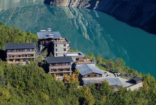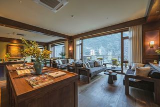 Accommodations feature king or twin configurations with wood furnishings, wainscotting, framed art, and marble-accented bathrooms. Public spaces include a signature restaurant serving locally inspired dishes with international accents, a lobby lounge with panoramic river views, and an expansive open-air terrace perfect for sipping wine at sunset while overlooking the mountain range, which is sacred to many local groups. Wellness offerings include an onsite spa, fitness center, and curated experiences such as vineyard tours, hands-on winemaking with local farmers, hikes to hidden alpine lakes, and visits to historic landmarks like the Catholic Church of Cizhong and Bengong Temple.
