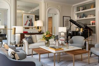 The theme of nature, central to much of the Brontës' storytelling, is expressed in the dining room. Victorian-inspired, hand-painted silver parchment scenic wallpaper provides a historic backdrop, complemented by a custom chandelier in gilded brass with seeded crystal - an abstract interpretation of tree branches and rainfall. Positioned between the central atrium and a panoramic rooftop terrace, the penthouse is filled with natural light that enhances the living, dining room and office, uniting narrative, craftsmanship, and design excellence.