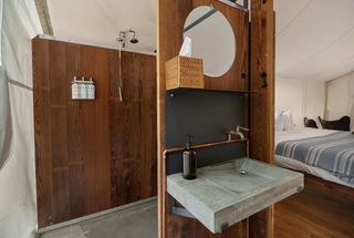 Under Canvas White Mountains will feature safari-inspired canvas tents, each with a private deck, all featuring West Elm furnishings, an ensuite bathroom with a pull-chain shower, sink and flushing toilet, king-size bed, luxe linens, bedside lanterns, a wood-burning stove, and USB battery packs.