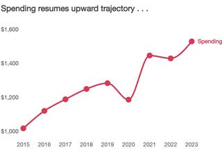 - The summer travel boom is continuing into winter, as spending is increasing a robust 12% vs. the 2022 holiday season.