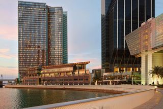PLP Architecture has designed the 34-story building to the exacting Estidama – Pearl 2 standard for sustainable urban planning. With its unique pattern of copper coloured "baguettes," energy is conserved while not compromising the Hotel's sweeping views of the city skyline and Arabian Gulf. Inside, natural light floods public spaces, restaurants, meeting rooms and guest rooms designed by Richmond International and HBA.