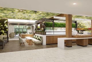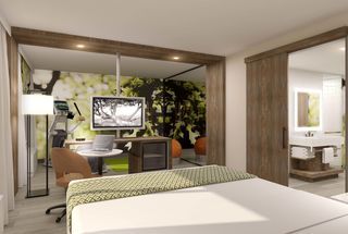 The calming effect of the outdoors extends to 139 contemporary guest rooms with bright windows, natural colors, crisp subway tiles, soft lighting and wood-like luxury vinyl flooring. Design doesn't negate function as each room contains open closets, a mobile table, ample counter space and an enlarged dressing area so guests staying for short periods can unpack and organize in ways that work best for them. Wellness suites with fitness equipment and full-length mirrors allow guests to work out privately.